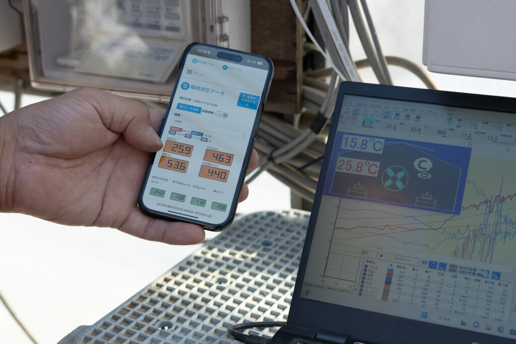 センサーと環境制御システムの導入によって、ハウス内のCO₂濃度の“見える化”が一気に進みました。
