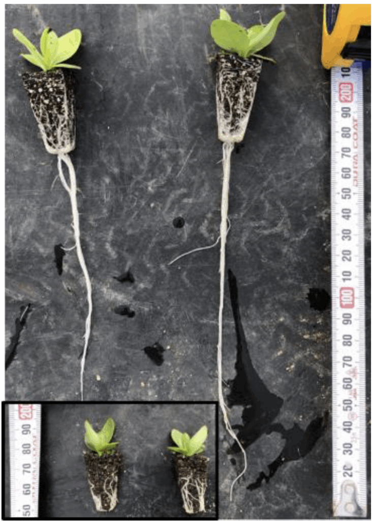 (左下:慣行苗)