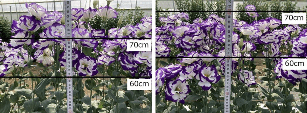開花時の草丈(左:作型適応苗、右:慣行苗)