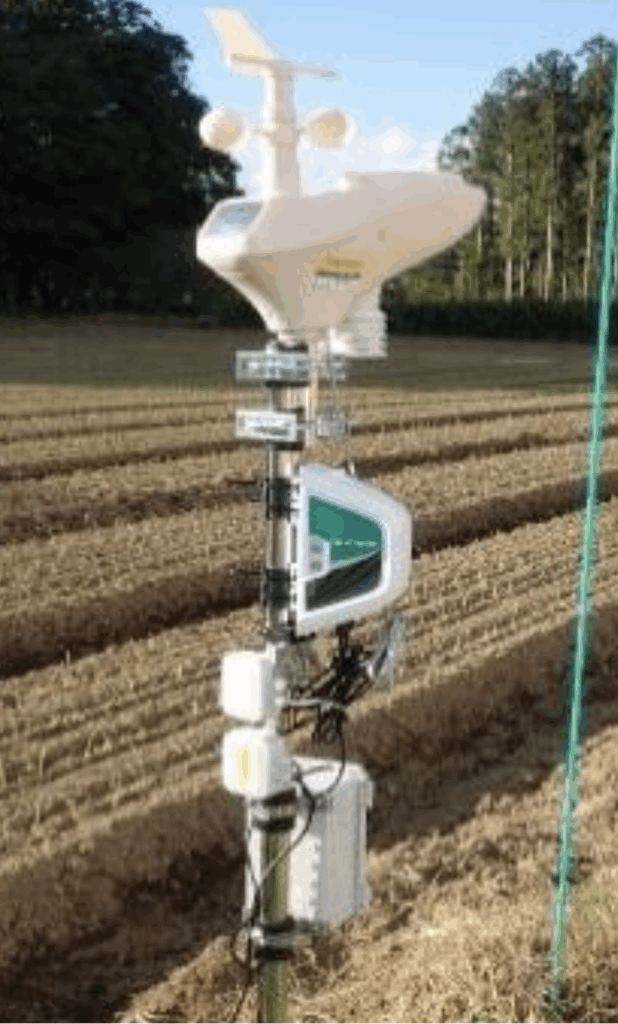 露地ほ場の環境要素(日射量、湿度、降水量、EC、土壌水分等)を測定し、遠隔でデータ確認を行える装置